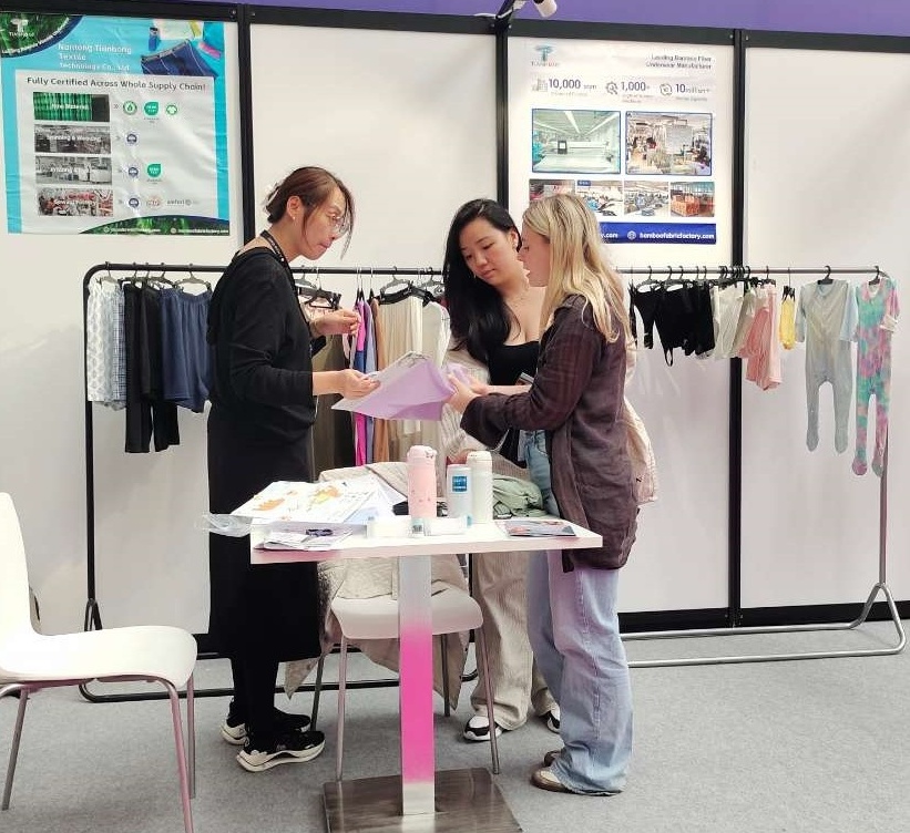 Vid Årets Expo Presenterade Tianhong Stolt Vår Högkvalitativa Bambu-Viskosunderklärder Och Avancerad Designtekniker. VÅR MONTER Drog Betydande Uppmärksamhet, med Många Besökare gula Över Vårt Unika Bambu -Viskosduk, Avancerad Sönadstekniker Och Starkt Engagemang För Hergbarhet.